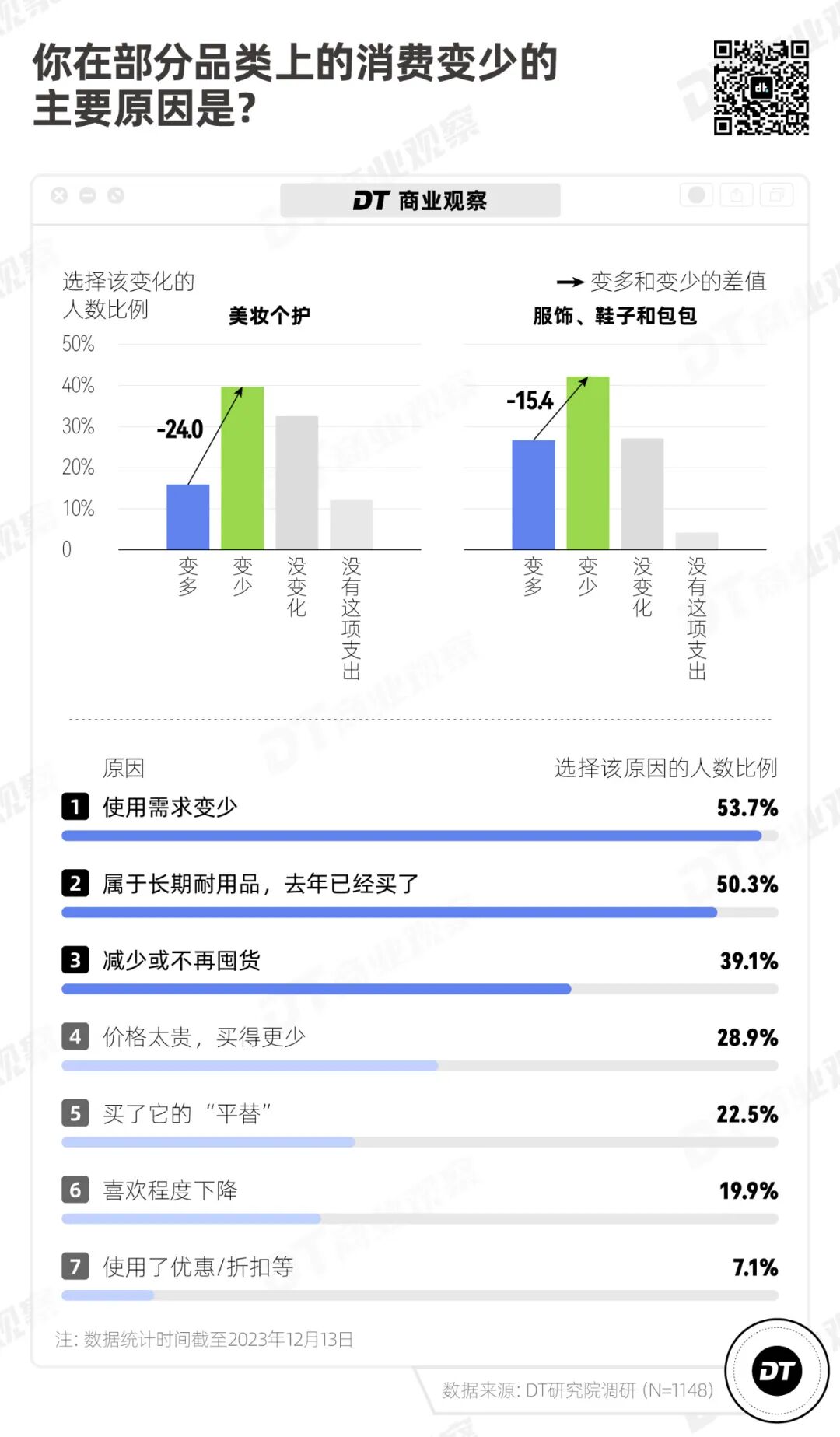 “花得更少”的原因,集中在“买得更少”这件事上: