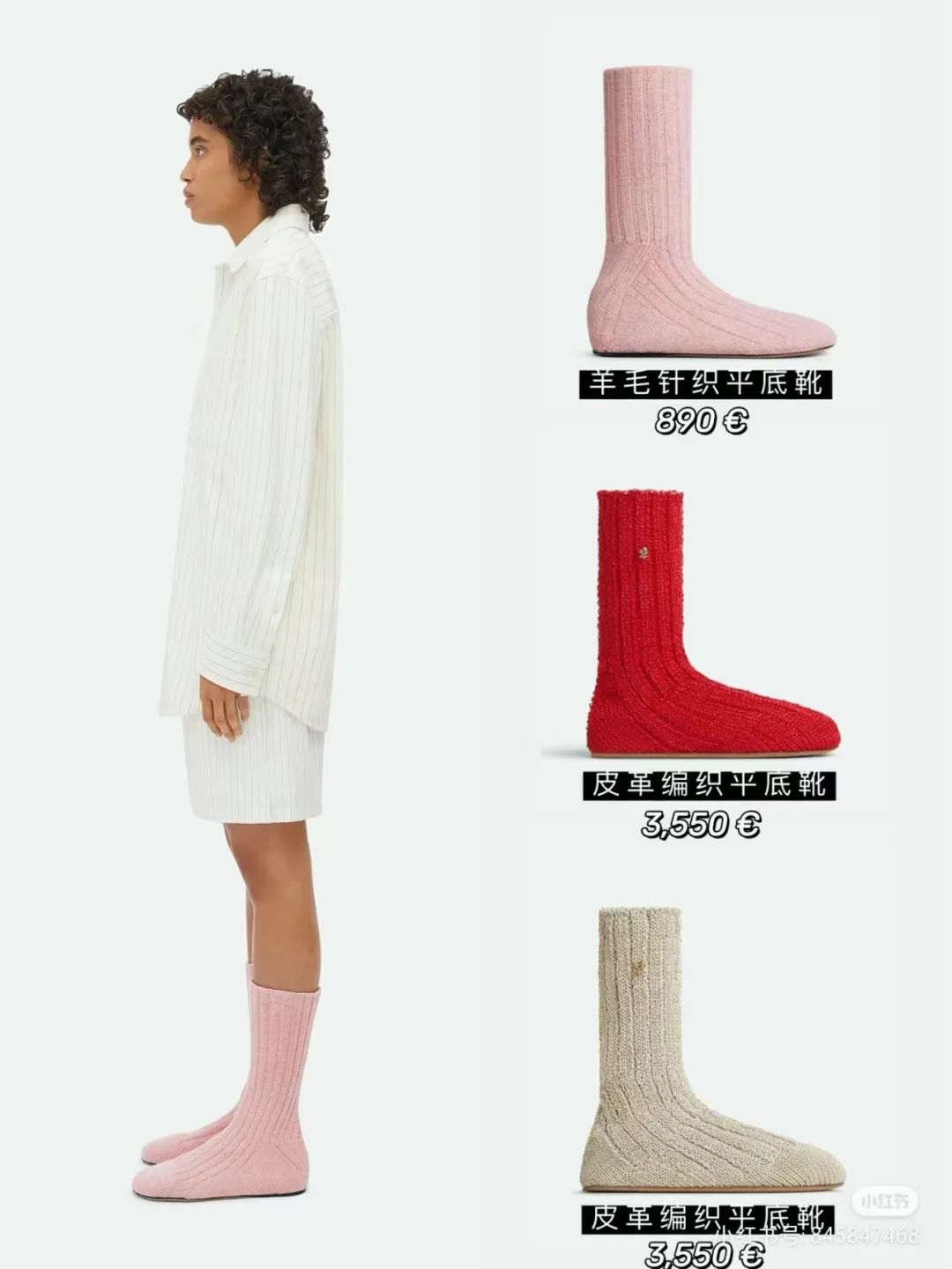 Bottega Veneta表示不服,申请出战,出了一款更歹毒的“袜子靴”。不是袜子不是靴子,而是皮靴伪装而成的粗毛线针织袜。