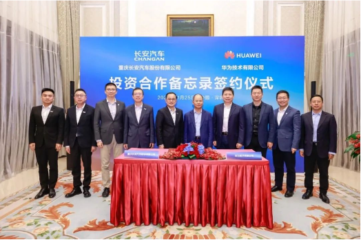 11月25日,长安汽车与华为技术有限公司签署了《投资合作备忘录》。经双方协商,华为拟设立一家从事汽车智能系统及部件解决方案研发、设计、生产、销售和服务的公司,而长安汽车拟投资该目标公司并开展战略合作,持股比例不超过40%。