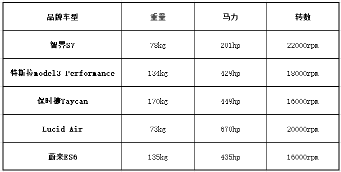 据电车天空统计,以最新发布的智界S7搭载的150kW电机为例,华为DriveONE方案整备质量78kg以下,较行业平均水平90kg轻约10%。对于电动车来说,驱动单元的减重意味着更大的“推重比”和对乘员舱空间的更少侵占,也让智界S7最快零百加速达到3.3秒,超过纯电的百万级跑车保时捷Taycan 4S。
