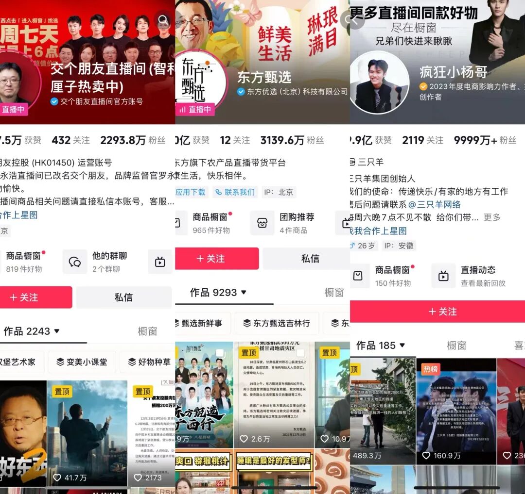 其实无论是抖音电商,还是淘宝直播、快手电商都有过类似的“去头部主播化”的事件发生,涉及抖音主播罗永浩、疯狂小杨哥,以及淘宝一哥李佳琦、淘宝一姐薇娅、快手一哥辛巴等头部主播。