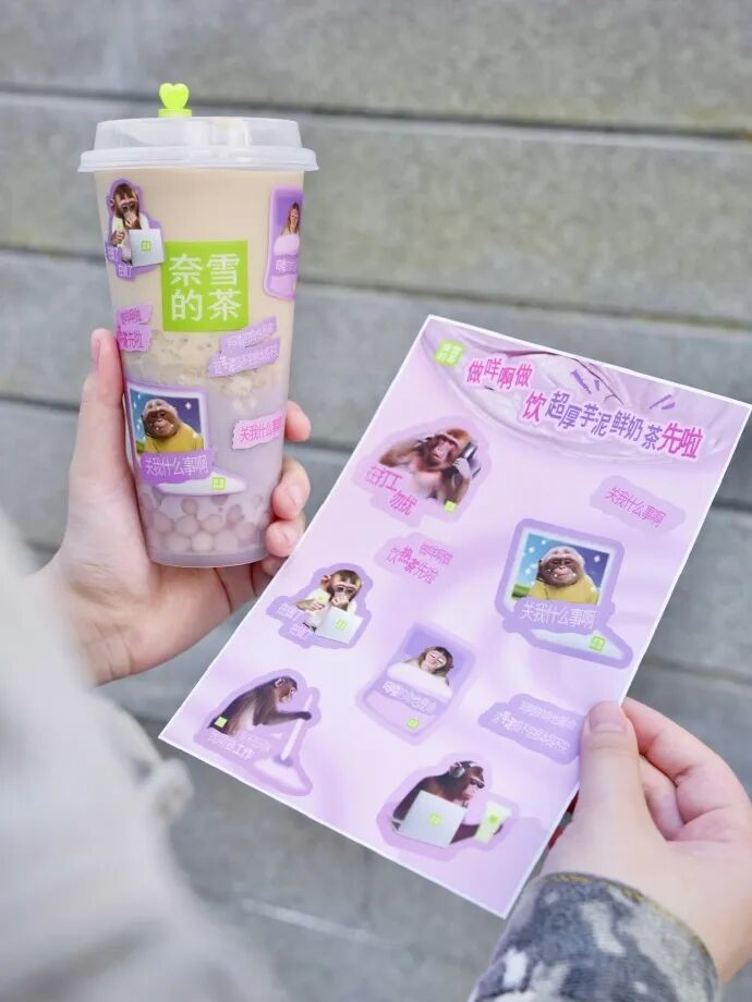 奈雪的茶在精准洞察打工人职场疲惫的基础上,接下“打工吗喽”这一热梗,携手“吗喽”推出芋泥新品。奈雪还上线多款配以“打工人暴躁语录”的吗喽表情包贴纸,将“吗喽文学”从线上带到线下,为打工人送去冬日温暖。