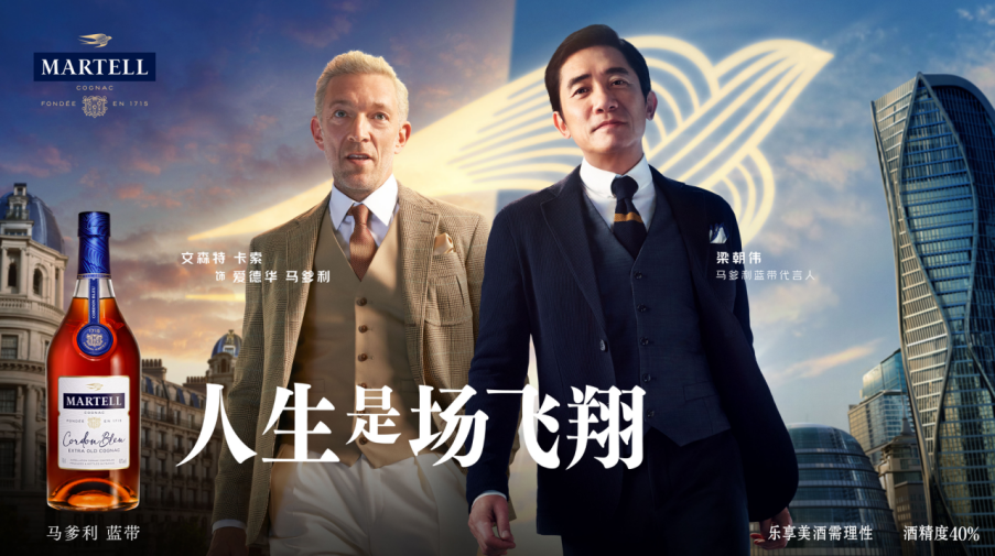 马爹利(Martell)是产自法国干邑地区的著名干邑白兰地品牌,也是世界上最古老、最驰名的白兰地酒。如今,“马爹利”已经成为名贵好酒代名词,驰名全世界。和不断突破自己的梁朝伟和彭于晏一样,创立于1715年的马爹利,不断超越巅峰,追求更高的传奇。1912年,爱德华·马爹利突破桎梏,创造了马爹利蓝带这款彰显非凡勇气的干邑。这款干邑极富创意地打破了当时只结合分级和酒庄名来命名的规则。历经三个多世纪的传承与沉淀,又调和了续写马爹利传奇的XXO。短片最后梁朝伟将XXO这瓶酒递给彭于晏,不仅是说酒不错,更暗示着三金影帝梁朝伟将这种突破的精神传承给彭于晏。中青两代巨星的碰撞,看点十足,通过两位在中国市场有着巨大影响力的品牌代言人,进一步加快马爹利与本地文化的融合,获得更多本地消费者认可。在微博上,该短片目前已获得708 万播放量,相关话题 #人生是场飞翔# 累计拥有 14.7 亿阅读量,实现了声量爆破。不仅拍摄品牌大片,马爹利在上海举行了《人生是场飞翔》第三部大电影全球首映暨《金手指》点映会,梁朝伟还现身与现场来宾互动抽奖,分享这部电影台前幕后的趣事和独家花絮,进一步将这部短片热度推上了高峰。梁朝伟精湛的演技不仅赢得了现场观众的一致好评,他敬业的精神以及不断突破自我的态度,更进一步诠释了马爹利的品质匠心精神。