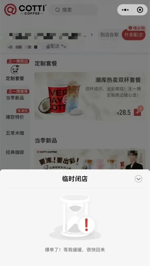 以至于有的店都临时闭店了,直接在屏幕下方打上了“投降”文案:“爆单了!等我缓缓,很快回来。”
