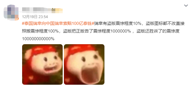 网友直接锐评,瑞幸这遭遇堪称“年度最惨”:“品牌有盗版震惊程度10%,盗版图标都不改直接照搬震惊程度100%,盗版把正版告了震惊程度1000000% ,盗版还胜诉了的震惊度100000000000%。”
