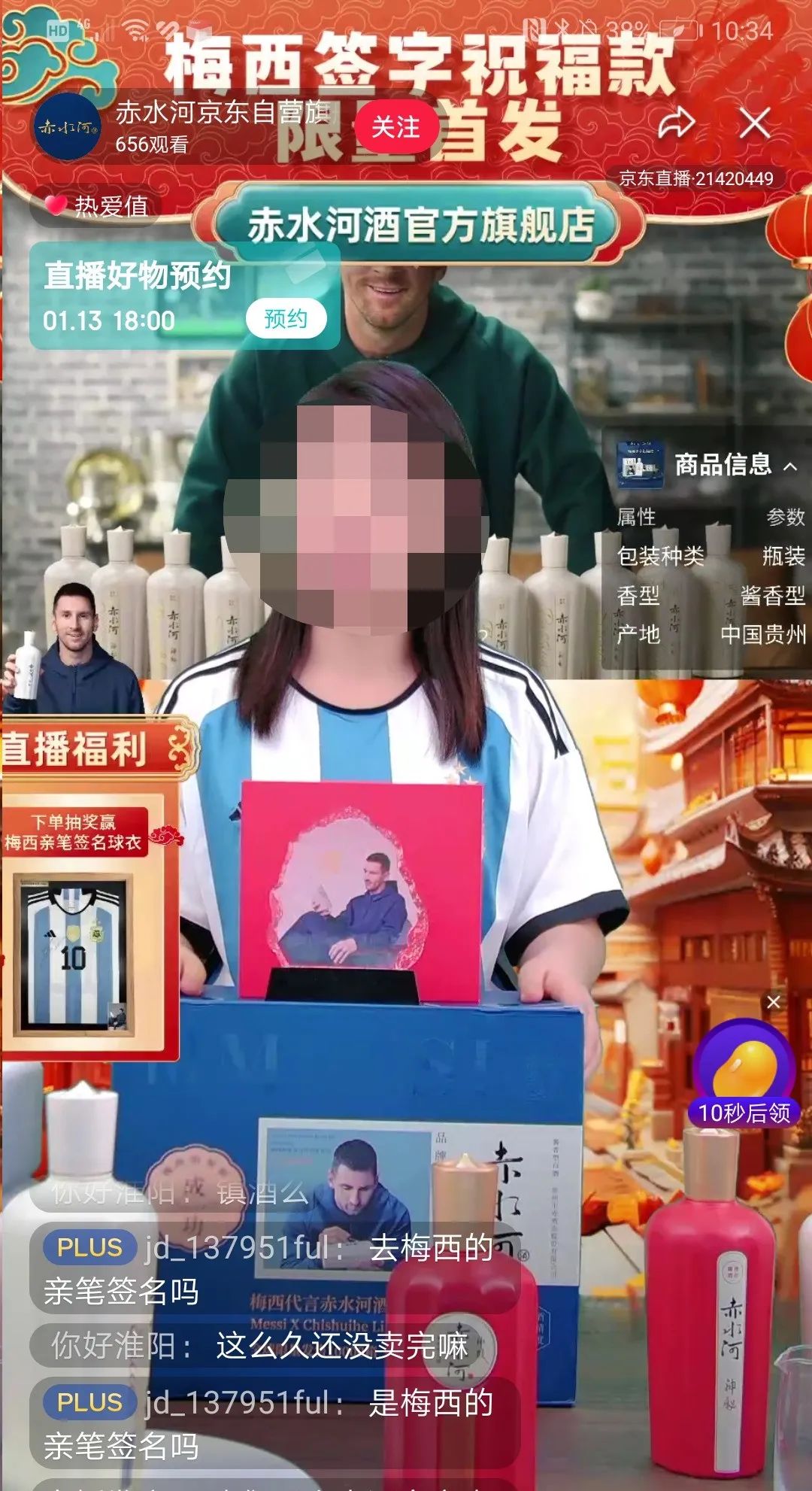 据《首席品牌观察》了解,可以获得梅西亲笔签名球衣的5个名额早已经被抢完,换句话说,赤水河酒起码卖出了50箱,销售额超33万元。但官方全球限量的1万件梅西签字祝福款,或许还没有售罄。1月12日,《首席品牌观察》进入品牌京东自营旗舰店直播间,发现女主播仍在介绍同款产品,表示下单者还可以获得梅西水晶摆台一件。