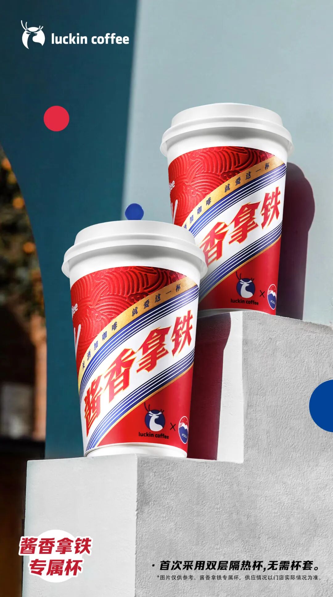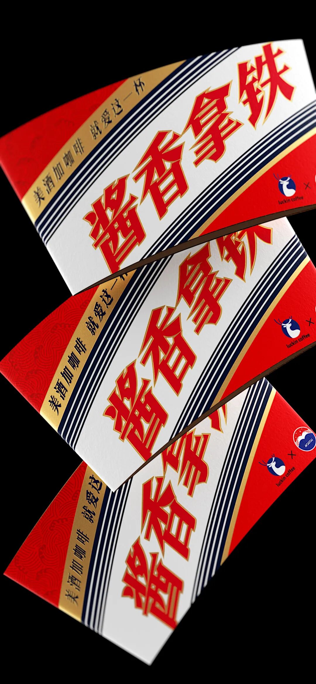 而此次的设计亮点在于,这是瑞幸首次采用双层隔热杯材,热饮拿铁无需隔热杯套。此外,相比1.0版本的联名款设计,这款酱香红杯将杯套上的元素直接复刻到杯身上,让整个视觉更加明朗、细致,其中还打造了专属凹凸水纹纹理,触感细致,搭配质感印金工艺,产品更显尊贵。
