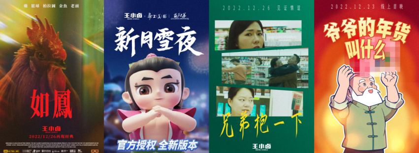 每一年的CNY营销,发布系列创意广告片已经成为王小卤的传统。今年年初,王小卤就在微博发布了年度贺岁大片即将上映的预告,并连续10天发布十张玩梗意味十足的简约、高级风格的海报进行预热。