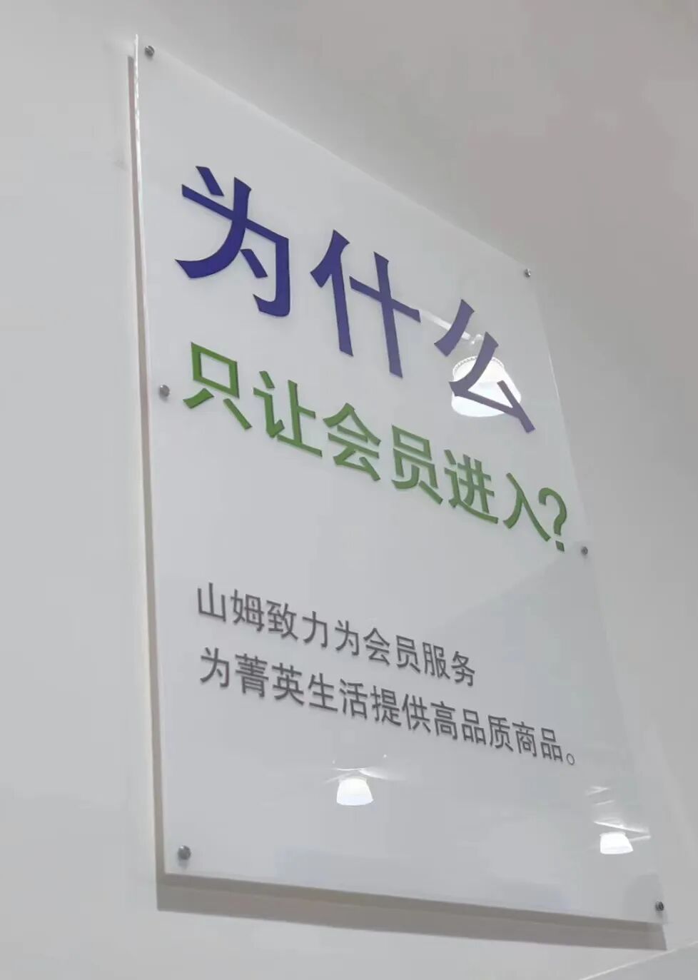 山姆对此特意在门店的大白墙上给出答案,“山姆致力为会员服务,为菁英生活提供高品质商品”。