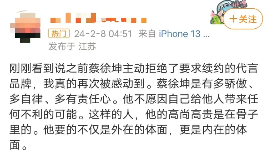 所以,即使在吃瓜群众看来,蔡徐坤离重回内娱顶峰还差得远,今年没有再上综艺节目,也没有地方台请他上春晚。