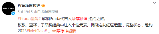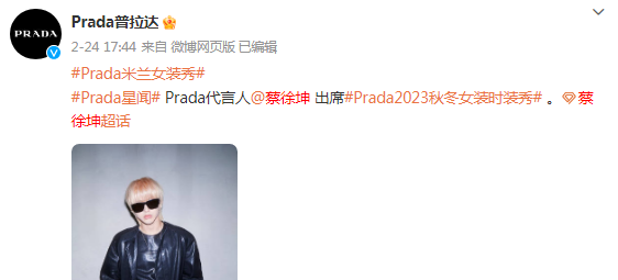像当时被大家调侃得很厉害的Prada,即使品牌又被吐槽是“内娱塌房检测器”,又被扣上了“衰”的帽子,但如果你现在去翻看Prada的微博,就能发现官方是没有删除蔡徐坤相关消息的。