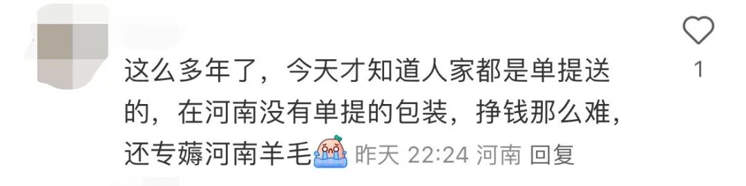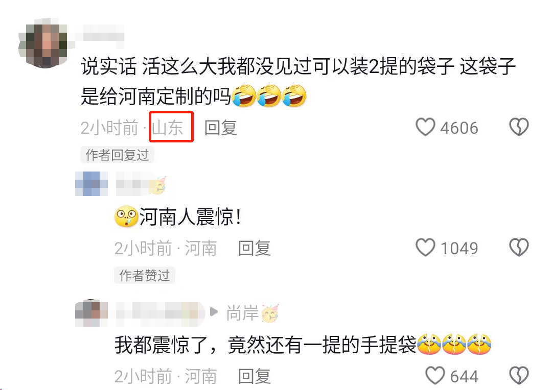 其他省份ip的网友均表示,自己第一次见这样的可以装两箱奶的大袋子,并认为是专门为河南人定制的。
