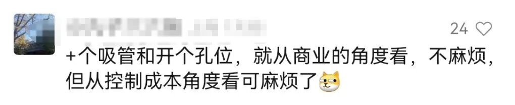 尽管如此,“南方有吸管,北方没吸管”是切实存在的问题,蒙牛的产品不存在地域差别,不代表其他奶企就一视同仁。至于为什么会有这样的包装差别,有网友的观点一针见血,这是企业控制成本的需要。