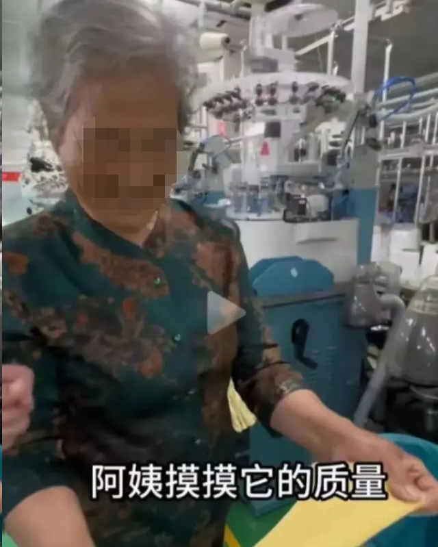 此外,徐老太还去参观了浪莎的生产车间,了解工厂流水线上的产品。俨然一个质量检测员的徐老太,手拿丝袜亲自带货。