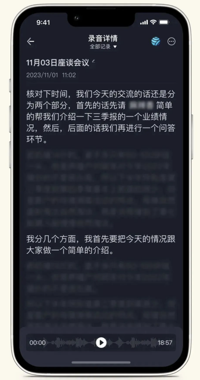用户芝麻糊(化名)是某公募机构的二级市场研究员,日常工作是跟踪自己负责行业的股票信息,及时反馈给投资端,并根据股票信息调整自己的估值模型,做出合理的投资建议,「听电话会」,是完成这一工作的重要方式之一。