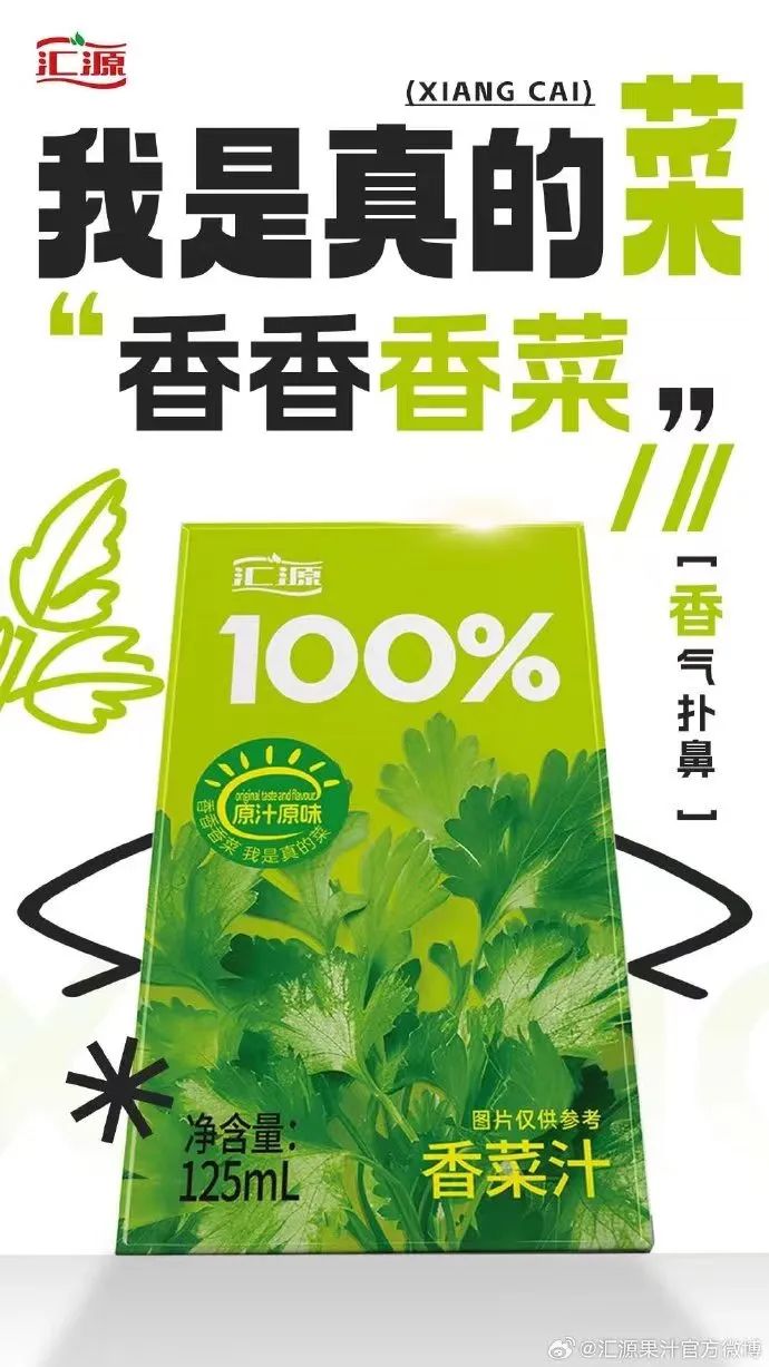 汇源果汁CEO咸晓芳在朋友圈po出新品“汇源限定香菜汁”的预告!预计会在三月底到四月上线该品。
