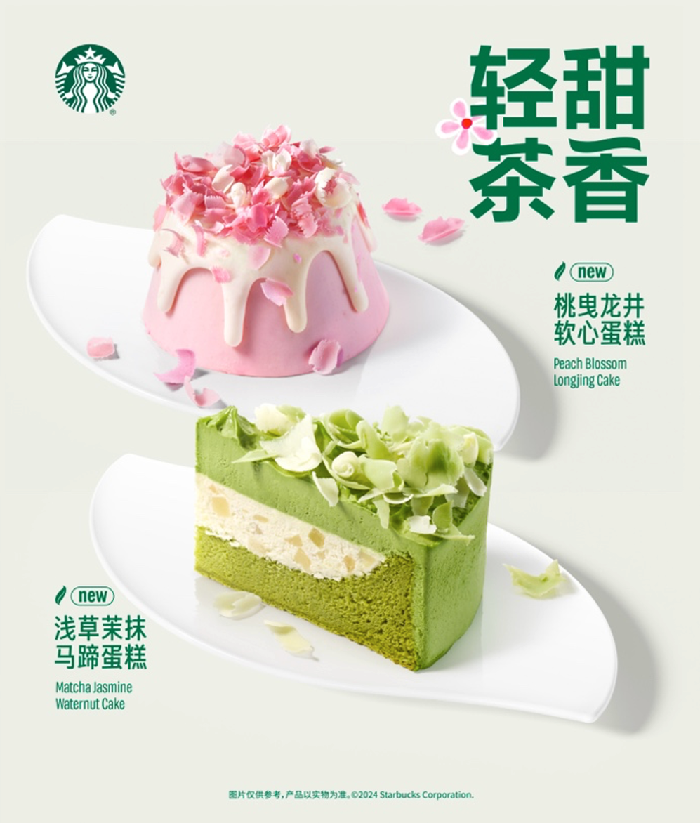 「兰香乌龙绵云拿铁」选用安溪铁观音,带有兰花香气的乌龙茶风味绵云,底部搭配星巴克经典燕麦拿铁;「抹茶绵云拿铁」所用抹茶原料产自浙江武义海拔700米以上的茶园,用清新抹茶融合迷人牛奶带来抹茶茶韵绵云,并搭配星巴克丝滑牛乳拿铁。「兰香乌龙绵云拿铁」,自带淡雅兰花般香气,乌龙茶和燕麦拿铁细腻融合,唇齿生芳。「抹茶绵云拿铁」,抹茶风味清新馥郁,如漫步在雨后的茶园。同时还推出了两款全新的春季限定蛋糕。「桃曳龙井软心蛋糕」和「浅草茉抹马蹄蛋糕」,春天的配色,带着茶香的清新口感,让人感受到来自春天的赠礼。另外,星巴克还同步推出了一系列周边,包括春日艺术手腕包、星杯、星礼卡等。不仅有经典杯型也有复古感十足的马克杯,也有春日田园系列星杯,更有身穿各族服饰的熊店长藏进品尝杯。春日新品和联名艺术周边,带给消费者一场味觉与视觉的新奇体验。