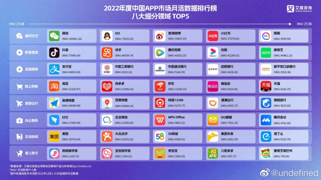 根据艾媒咨询的数据,2022年度通讯社交类别的APP市场月活数据中,小红书已经来到第四名,仅次于微信、QQ和微博,要知道前三者都是“非富即贵”,要么是“老资格”,拥有深厚的用户基础,要么是在社交以外还有其他诸如支付、资讯等用户联系度更加紧密的功能。