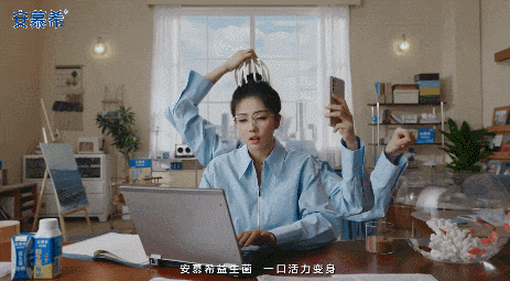 白鹿化身办公室白领忙到手忙脚乱,闷了口安慕希酸奶后,瞳孔放大,仿佛能量爆棚。