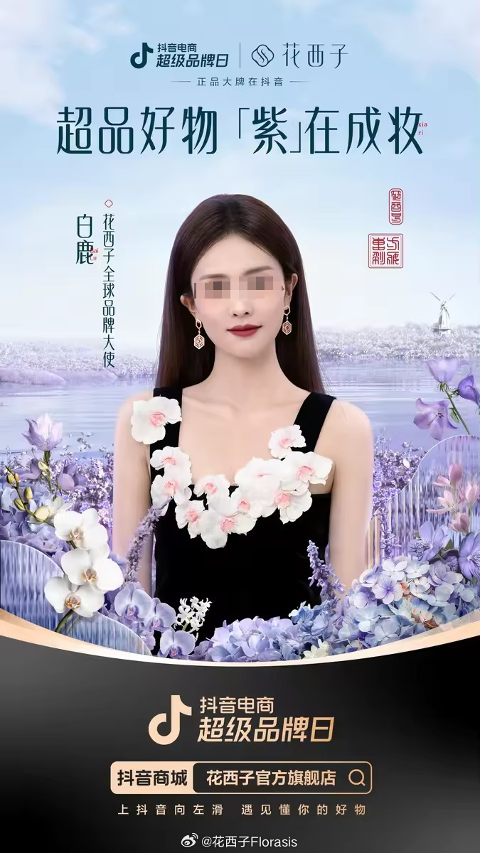 之前花西子跟抖音直播合作,就把白鹿拍得一言难尽。