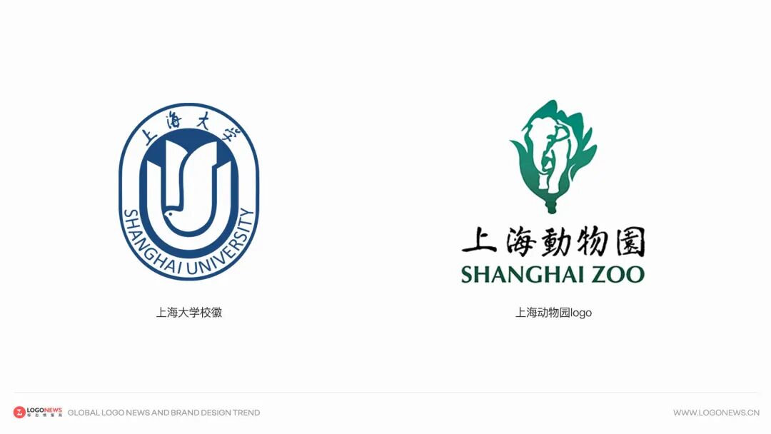 还有如上海大学和上海动物园的标志。上海大学的校徽整体为白玉兰的花朵形状,同时也包含了「U」字和海鸥。上海动物园的LOGO同样以白玉兰为灵感,花朵的内部嵌入了一头亚洲象的剪影。