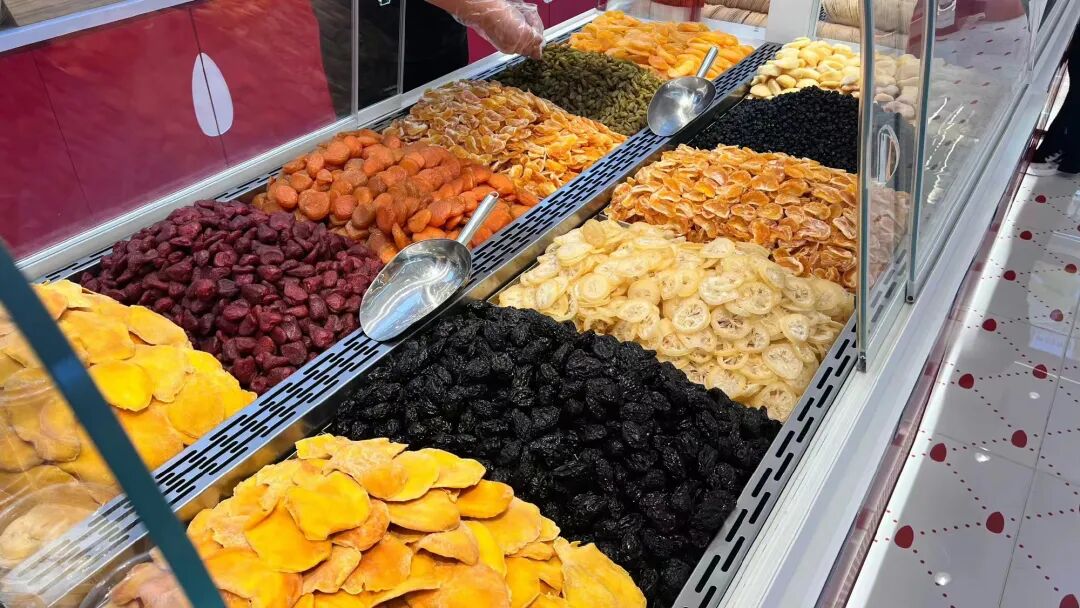 除了瓜子、花生还保持十几块一斤的老价格,坚果、果干、蜜饯、零食以及一系列新式炒货,如奶枣、酸奶柑橘片等,下至30元一斤,上至300元一斤。