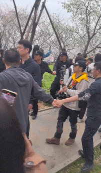 最近,董宇辉现身武汉东湖樱花园,拍摄宣传片和欣赏樱花。
