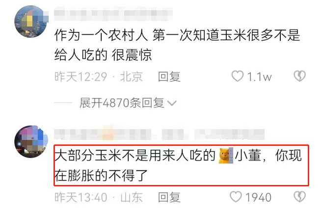 这番“谷贱伤农”的言论,被网友认为董宇辉只是为高价玉米找借口,颠覆了大众对玉米的普遍认知。