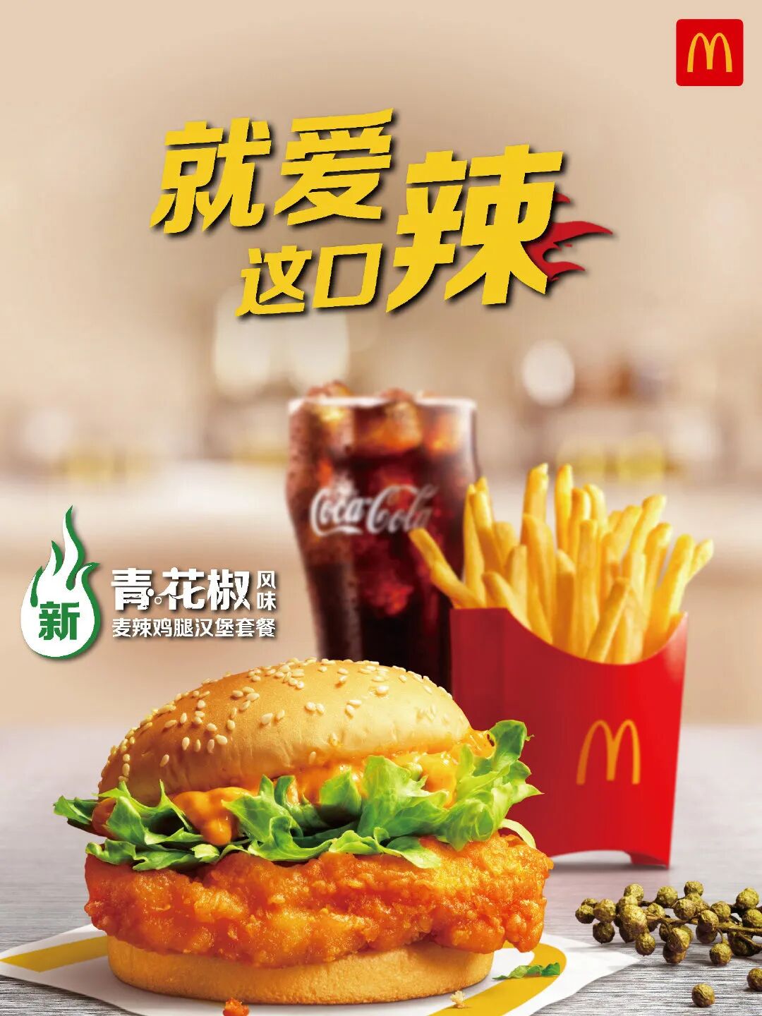 很懂中国人就好那一口辣的麦当劳,近年来,多次致敬中国各地不同的「热辣」风味,如小炒肉风味、大盘鸡风味等带着浓郁地域特色的麦辣鸡腿汉堡家族限定产品,还有青花椒风味麦辣鸡腿堡、激辣肥汁风味鸡腿汉堡这些让味蕾颤抖的家族成员,都在根据年轻人当下的口味偏好做出更大胆的风味!