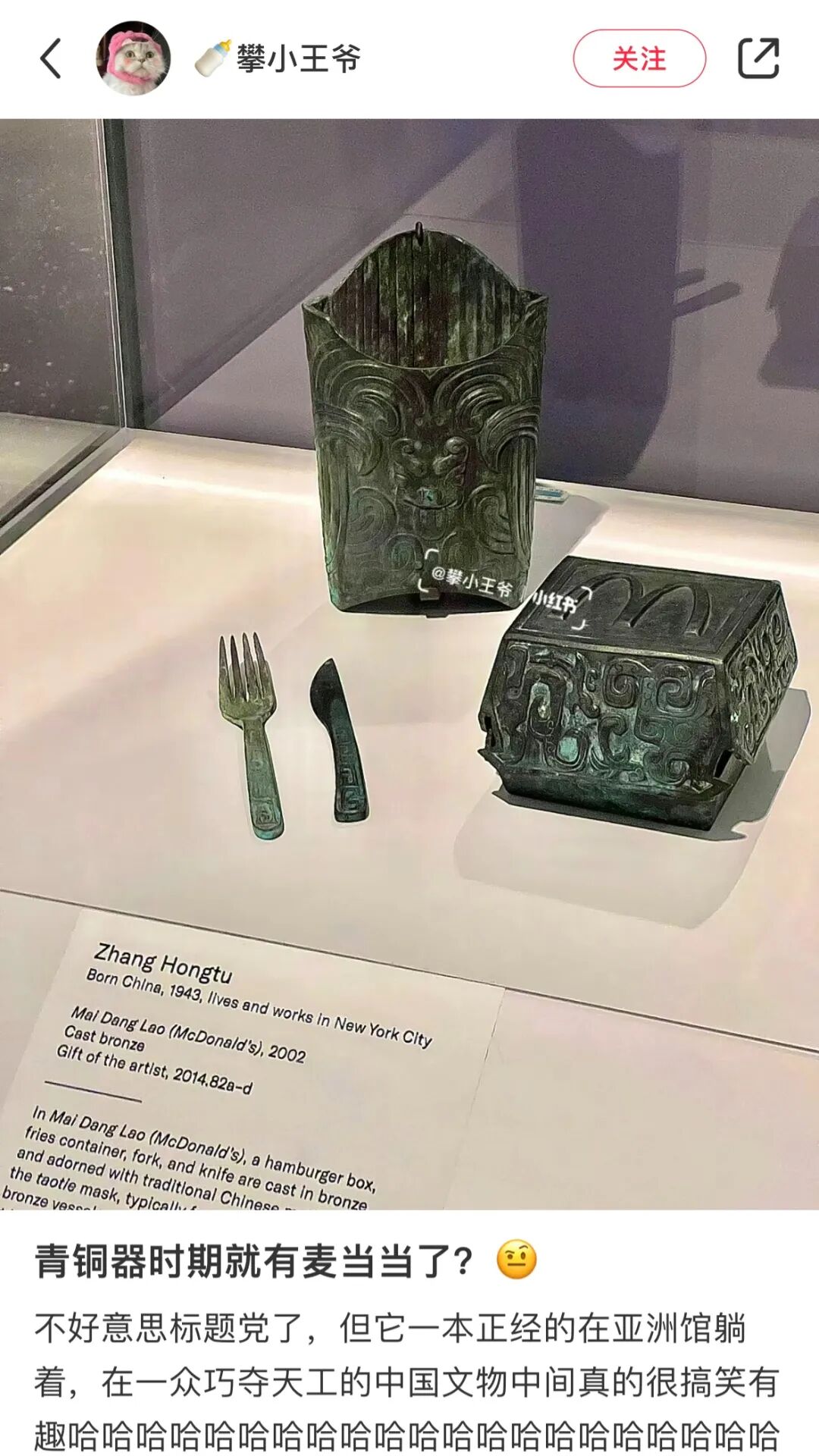 前有亚裔美国艺术家将麦当劳「开心乐园餐」变身为商代神器,后有麦门铁粉用 AI 技术制作「 M 记新鲜出土的宝物」,这以假乱真的程度让人直呼「爱吃麦当劳,就是从青铜器时代流传下来的传统美德」吧!