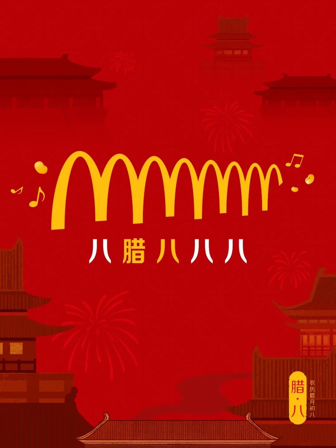 众所周知,麦当劳是一家被汉堡耽误的设计公司。去年腊八节,麦当劳把品牌经典的背景音乐「ba la ba ba ba」谐音成「八~腊八~八~八~」。