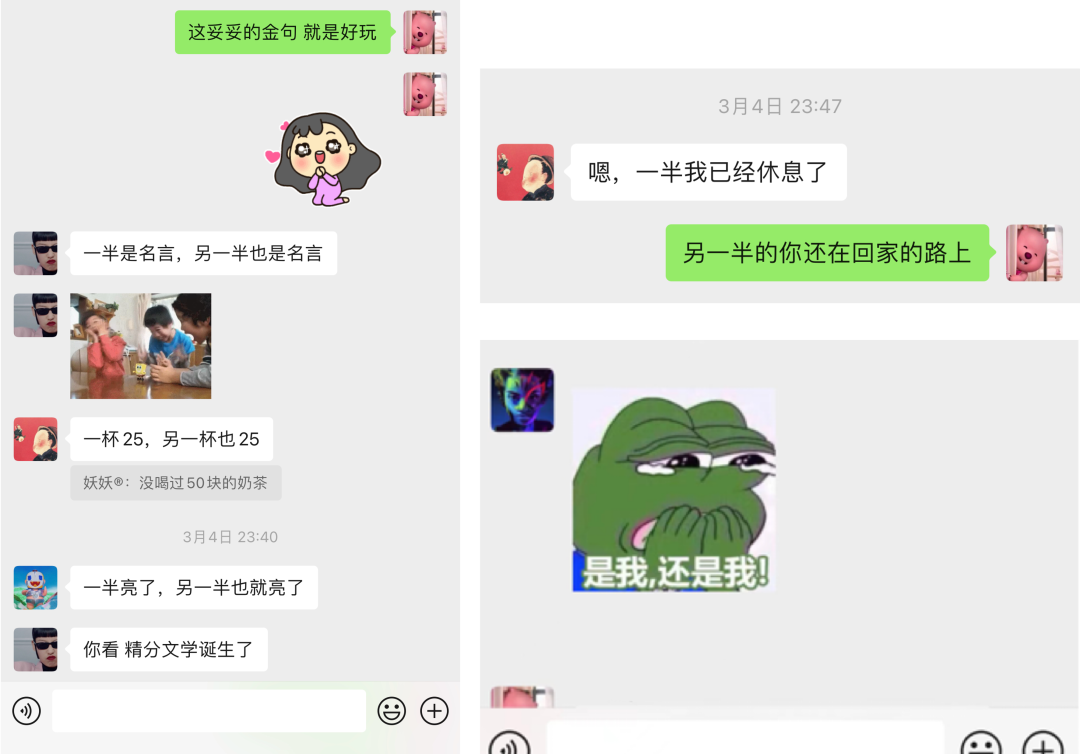 好了,希望这个世界有一天都能精分成我们想要的样子,最后祝大家:无论哪一半,都可以享受当下,把握最新鲜的快乐。