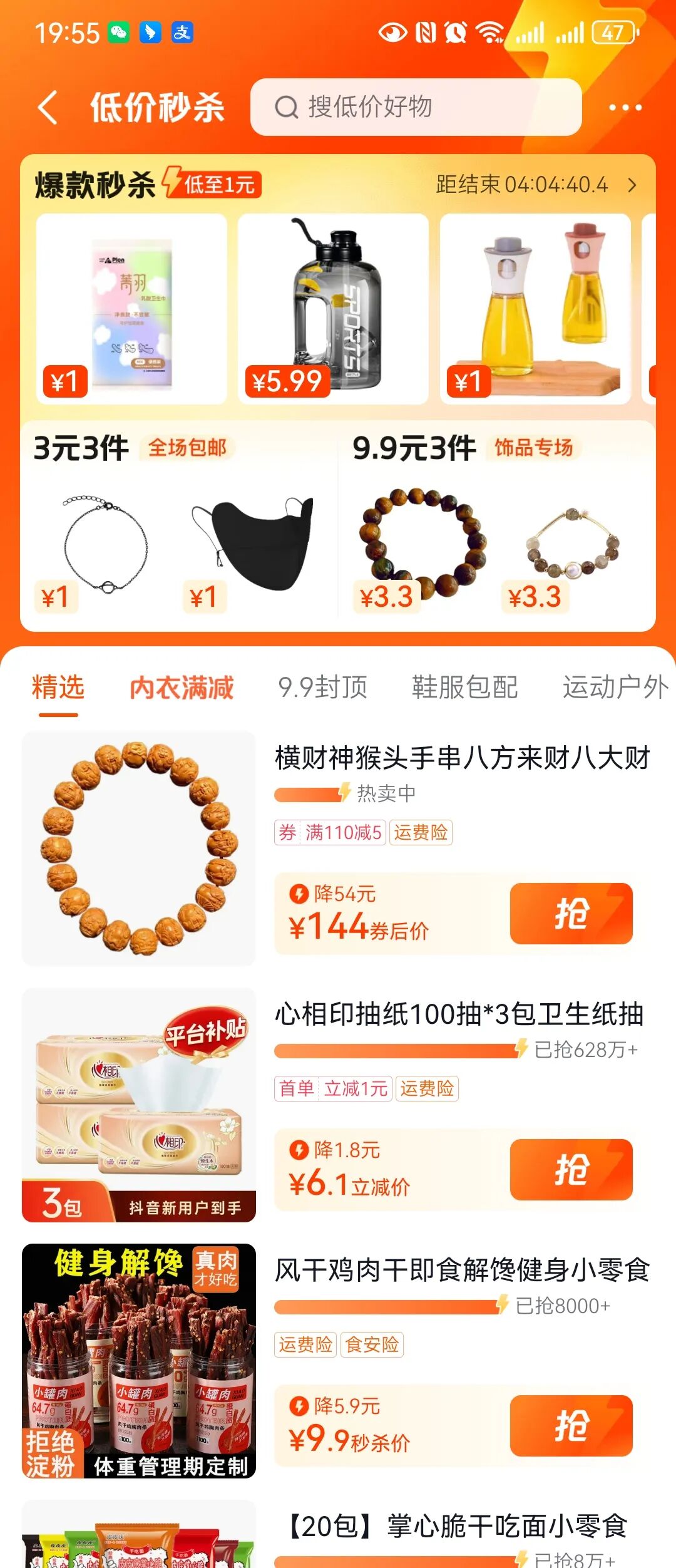 正如上文提到,抖音商城版APP将“低价秒杀”位置突出;同时,对于新注册的新用户,抖音商城版APP首页会有明显的“新人专享补贴”频道等。