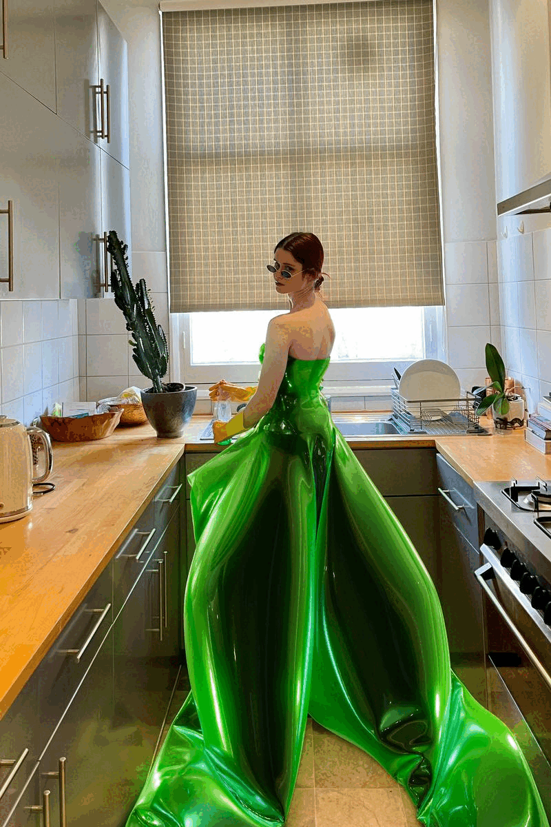 一条丝袜可性感可甜美,一大堆丝袜却成为了高级感满满的小礼服。