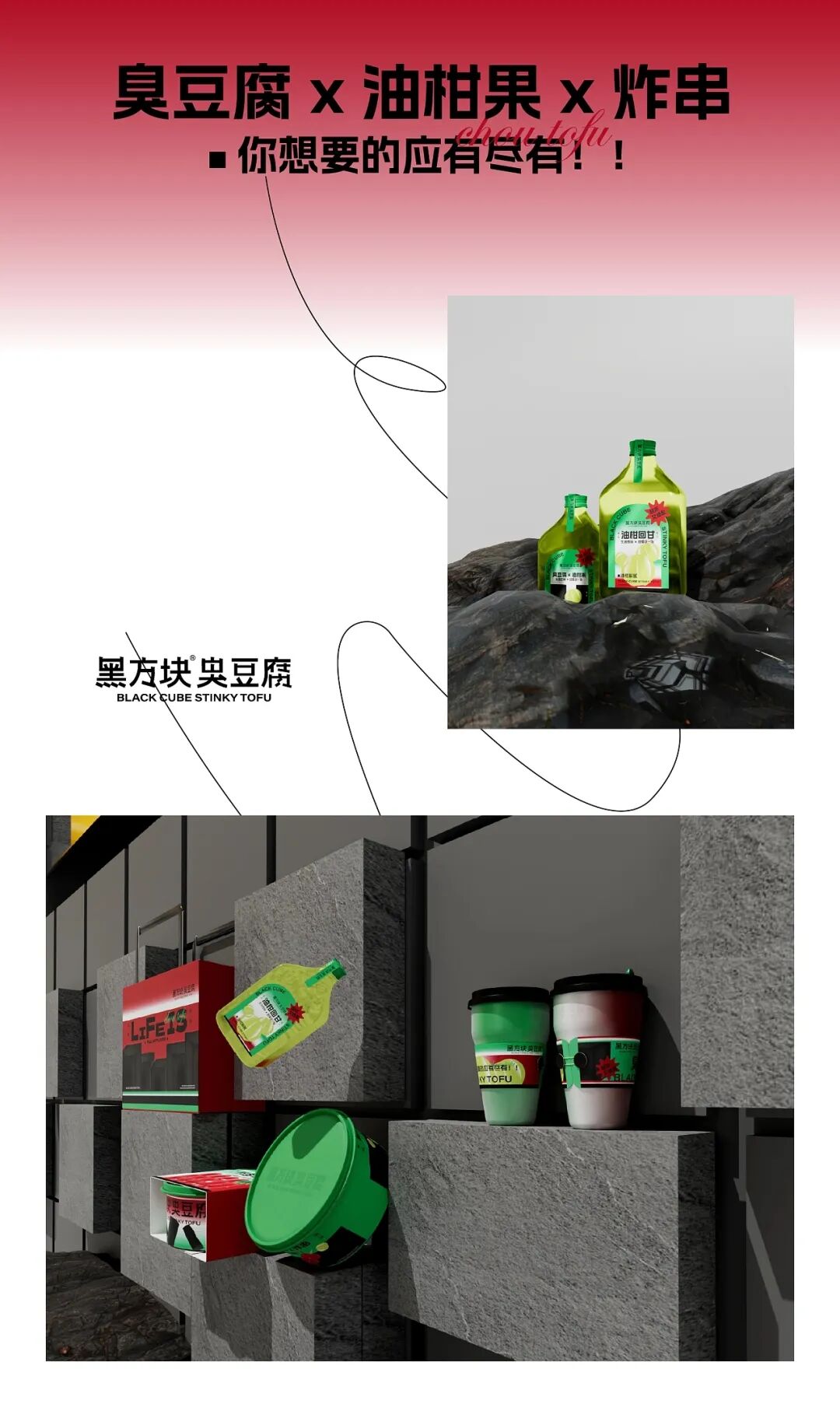 用臭豆腐与油柑果茶以及炸串进行混合推出,拉大与街边小吃的差异化,做臭豆腐,但是不只是臭豆腐!一色一味一应俱全!碰撞出不同的美食风味!!你想要的应有尽有!!