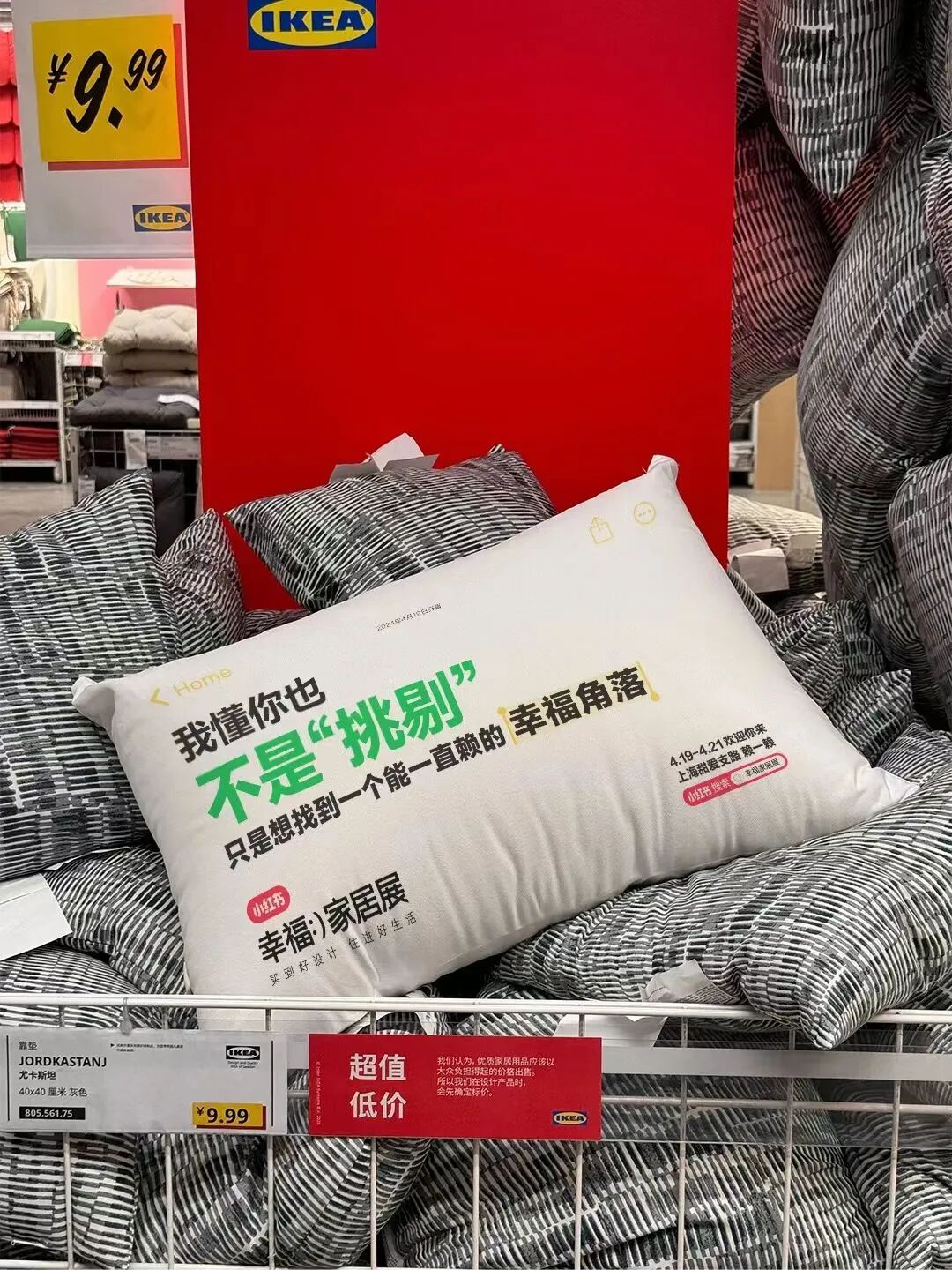 还有出现在宜家的小红书枕头,直接和竞争对手叫板,小红书也太勇了。