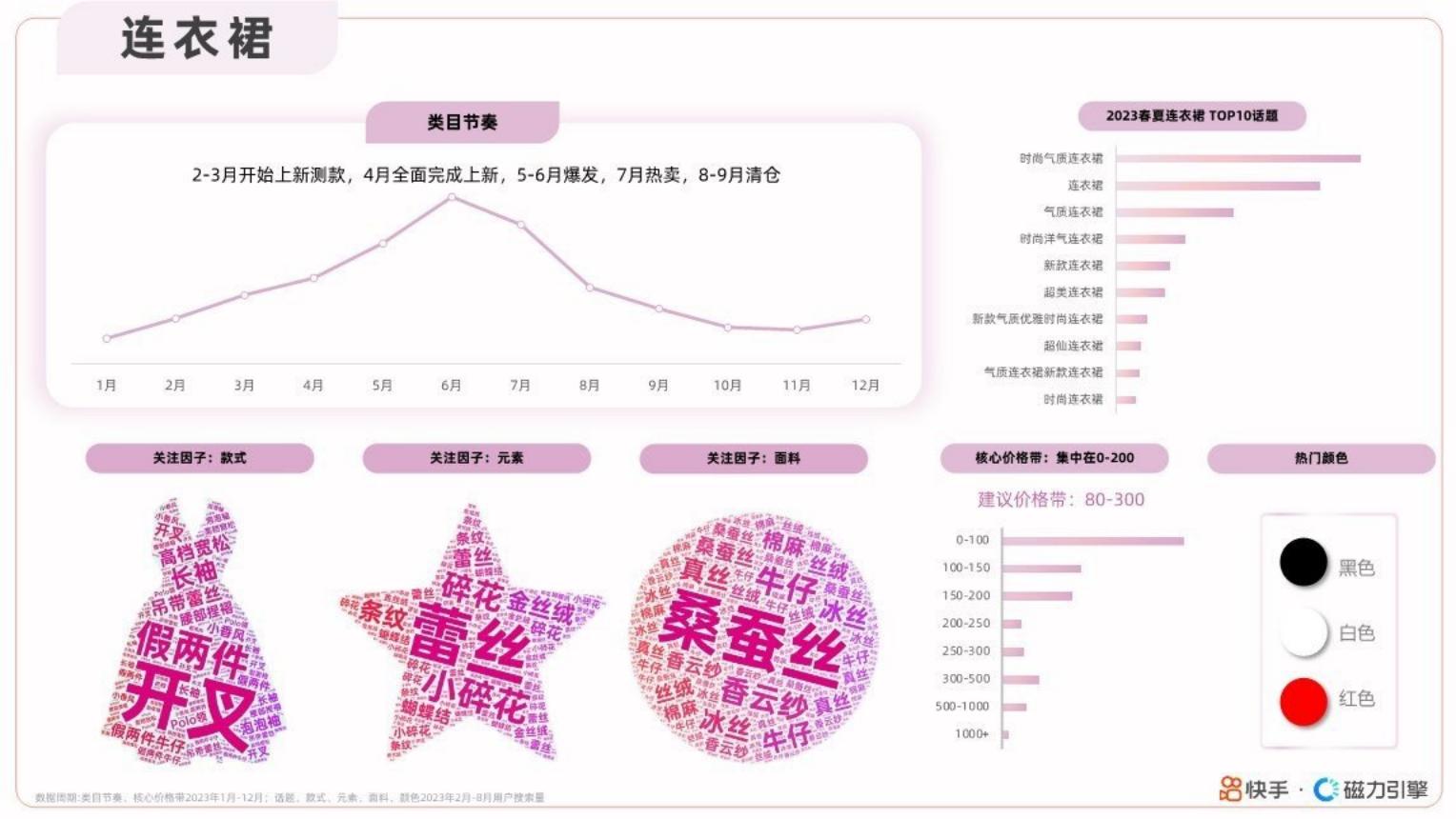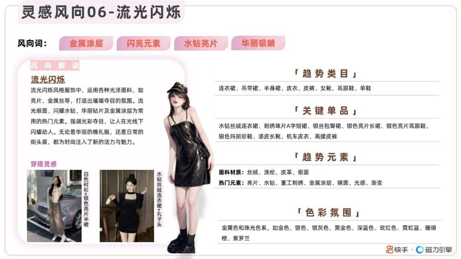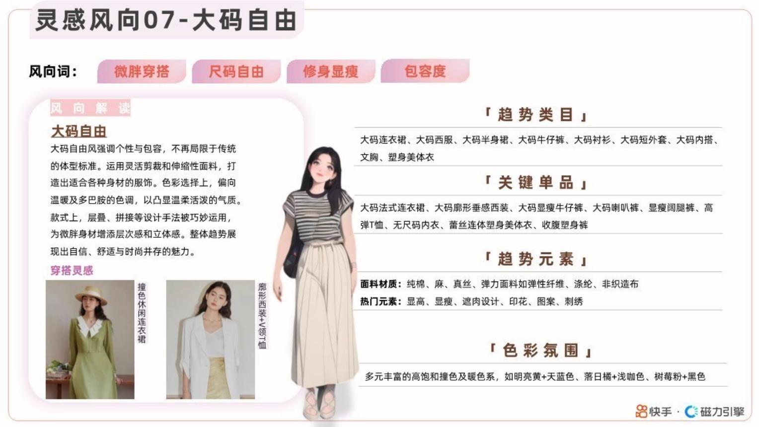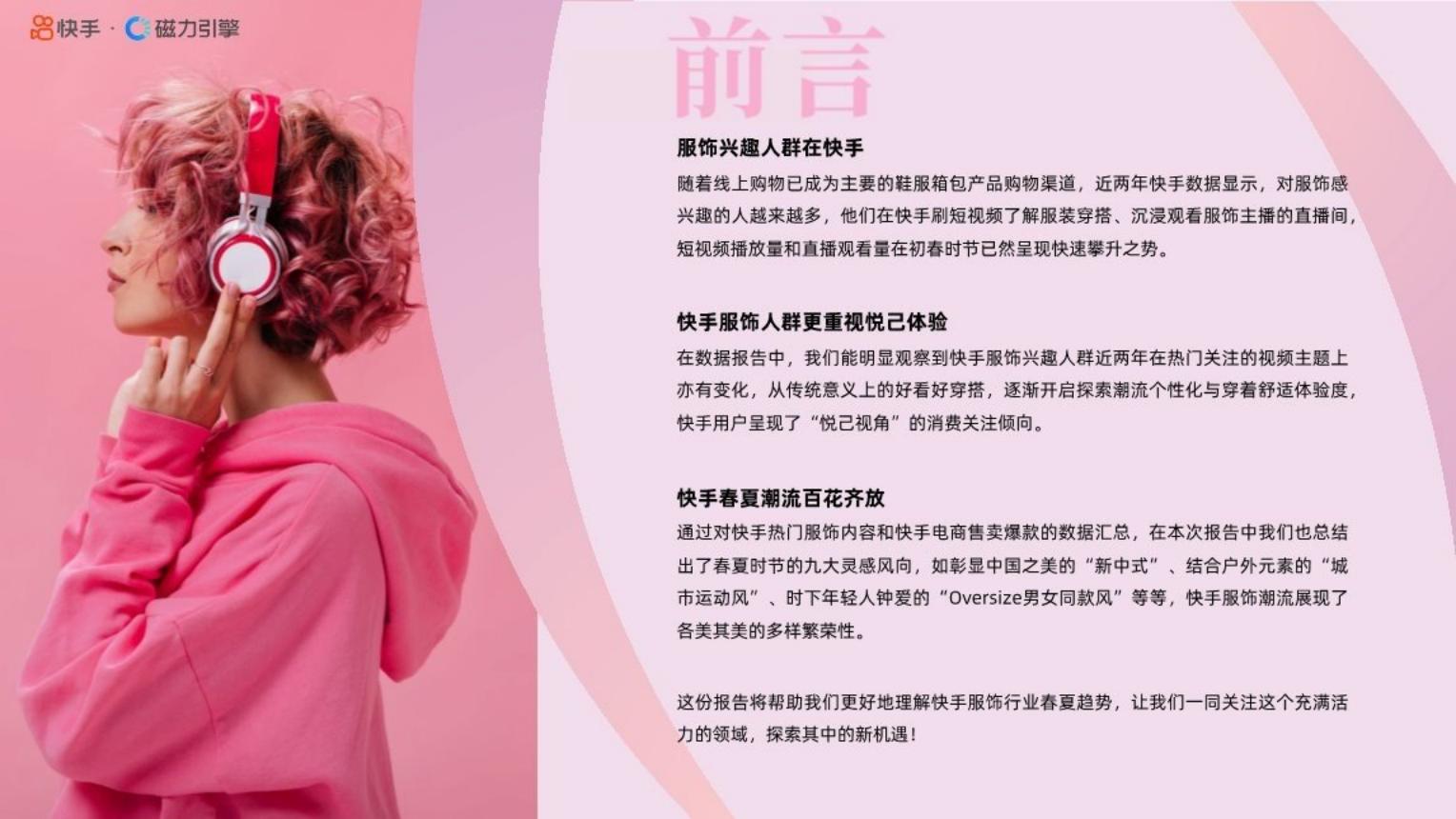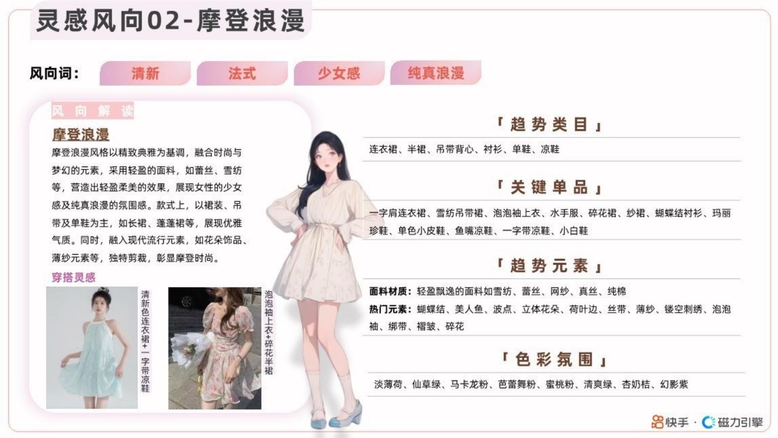 这份报告通过快手服饰行业洞察、春夏核心品类指南、春夏服饰流行灵感趋势等内容帮助商家提前了解未来发力方向,进而合理地选品与备货。