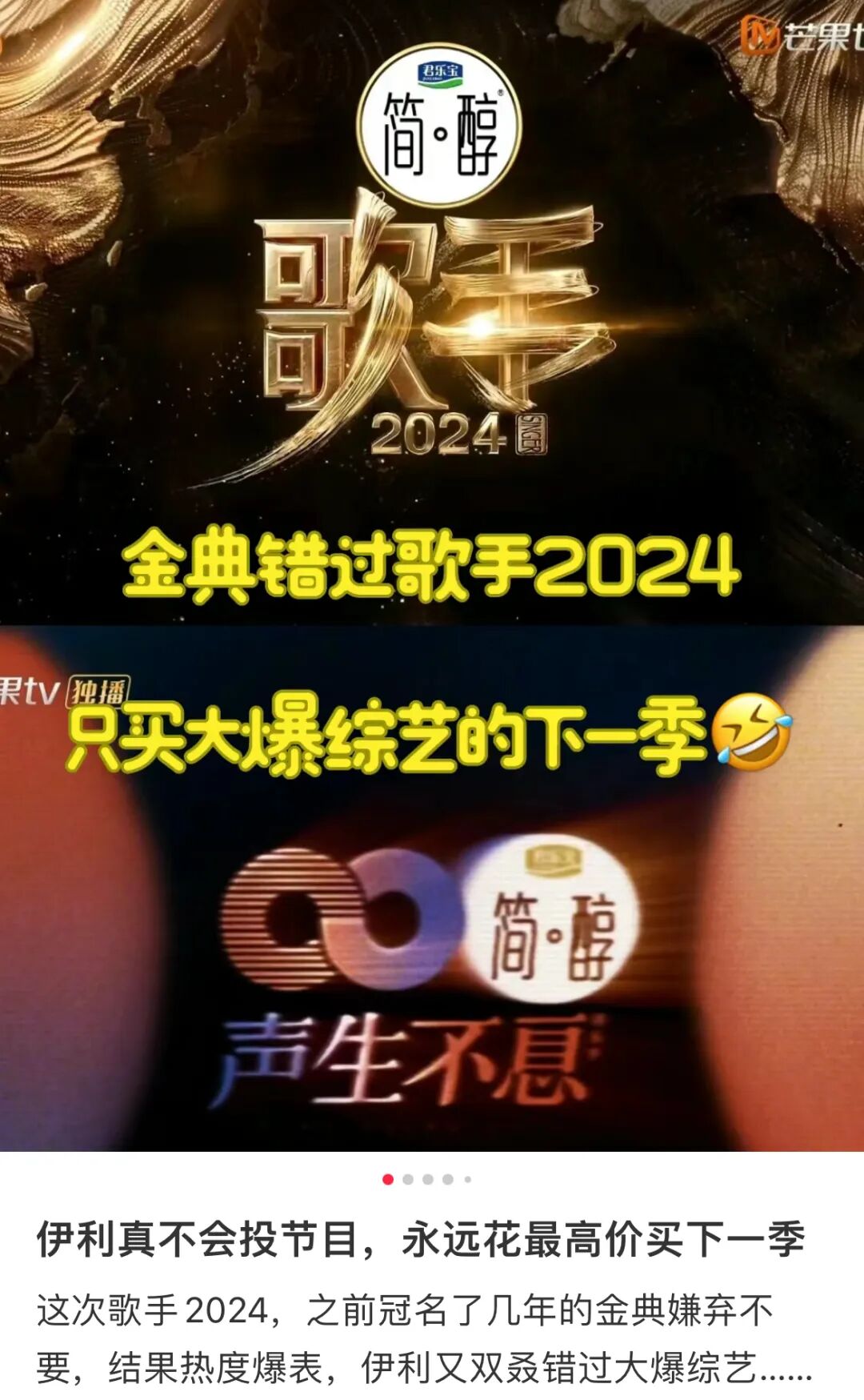 简醇酸奶冒着“打水漂”的风险押宝歌手,着实勇气可嘉。