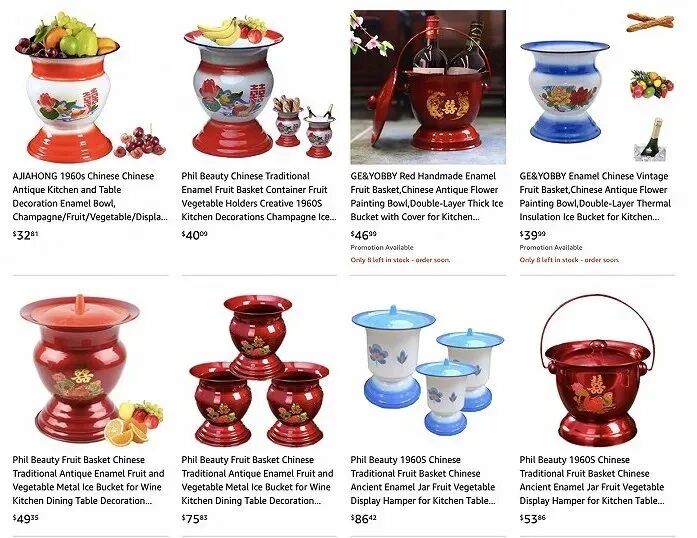 比如中国痰盂,曾经有媒体报道,在美国电商平台亚马逊的网站上,一个印着牡丹鸳鸯图案的搪瓷痰盂,标价近400元,跟国内淘宝价价格相差了十多倍。