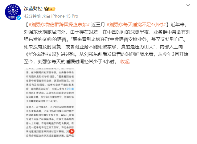 另外,有内部人士透露,他经常在深夜通过60秒的语音消息指导工作,显示其近期的日均睡眠时间可能少于4小时。
