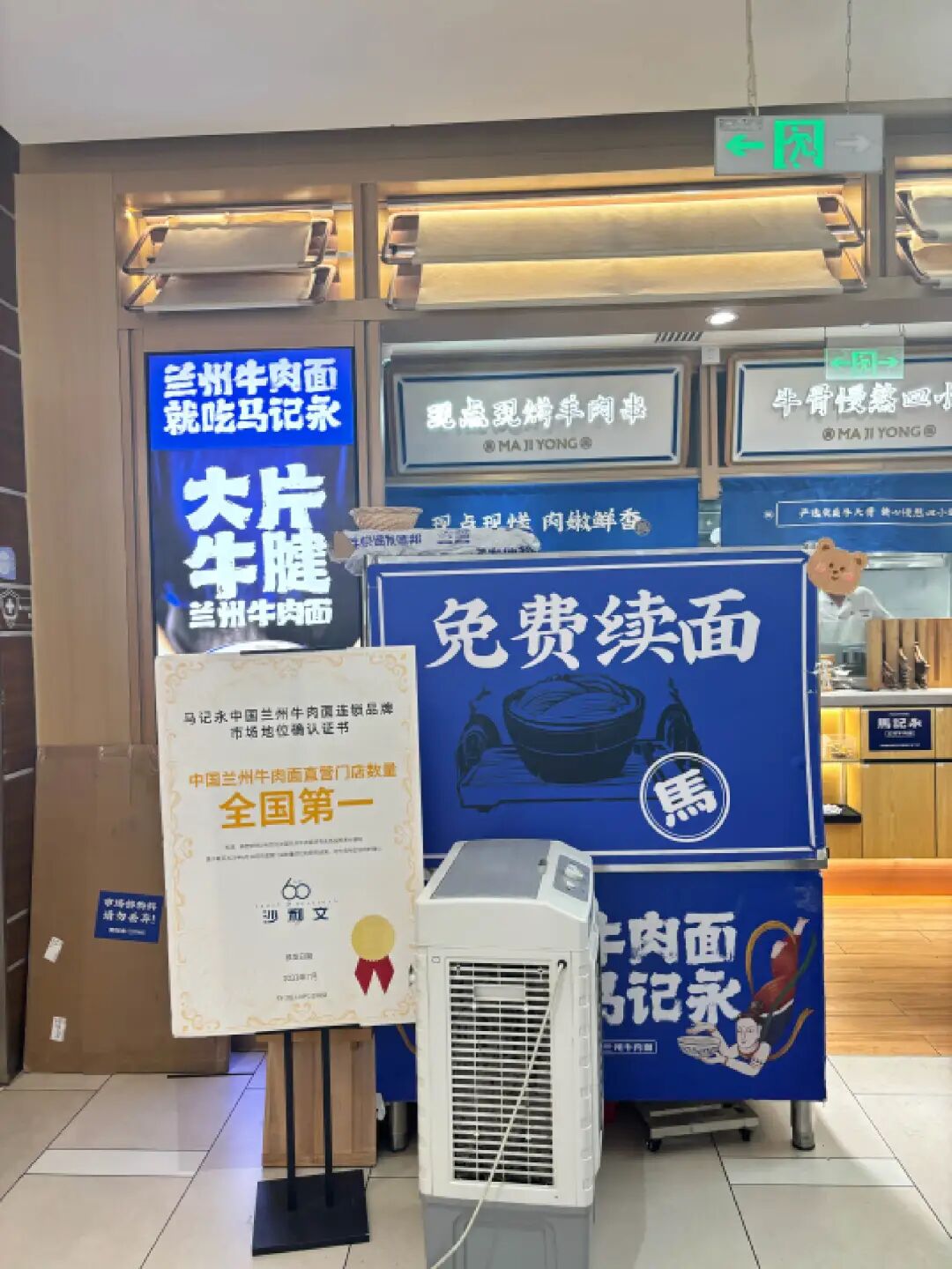 无论是马记永还是张拉拉,没进店你就可以看到四个大字“免费续面”,它们“长”在店里最显眼的位置、大门前的广告牌以及无处不在的博主宣传中。