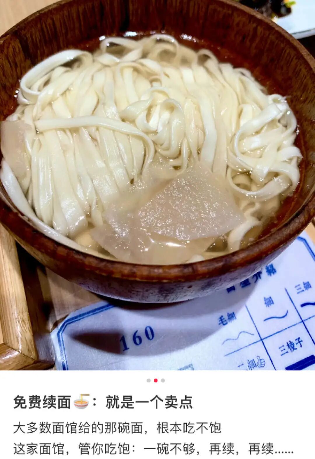 面条不值钱,但耐不住薄利多收。原本一份面的量变成越来越少的初始面和单点续面,说着好点的“无限续面”实践起来又有些门槛。