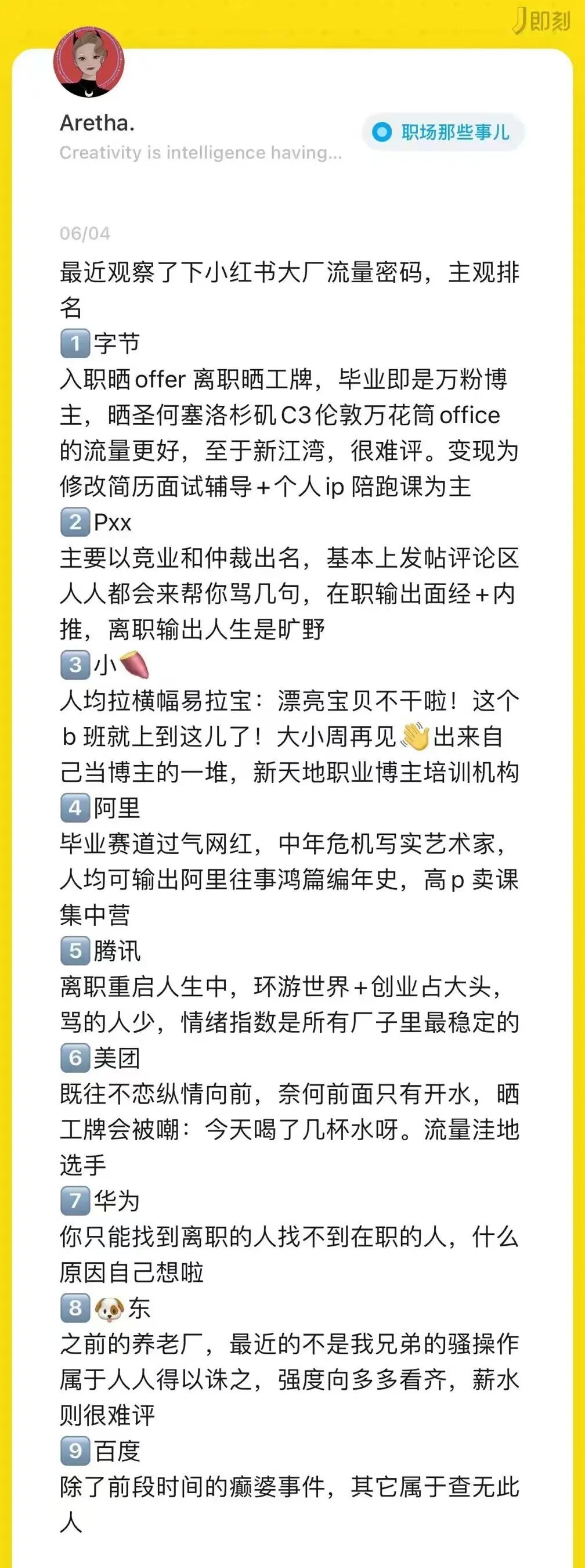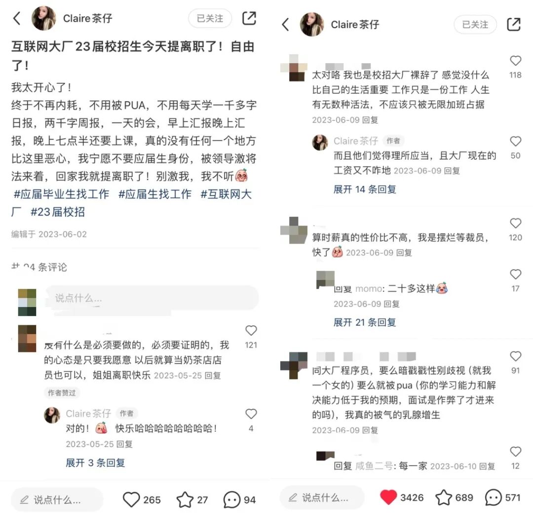 在众多离职贴中,挂着“互联网大厂”的内容更是能迅速激起大家的讨论热情。
