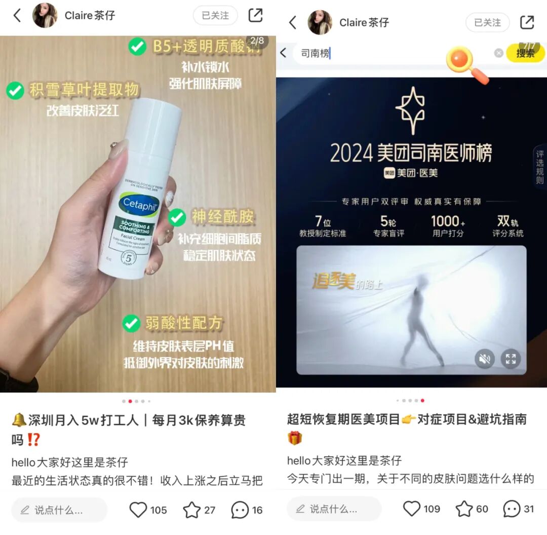 “如果没有持续的内容输出、非常强的个人IP色彩,爆贴也很难让账号风生水起”,@Claire茶仔表示,“小红书的中心化,非常考验博主每一篇的创作能力,只有内容足够好才能在流量池站住脚,因为平台永远需要用算法来卷博主。”