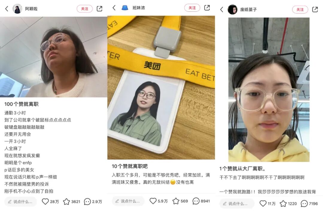 不论是对职场不公的正面反抗、还是对职场成功学的反思,这些离职博主们正在上演打工人心目中的职场“爽文”,给无数仍然困在职场的人带来短暂的多巴胺,也成为很多人“想成为但没勇气成为”的样子。