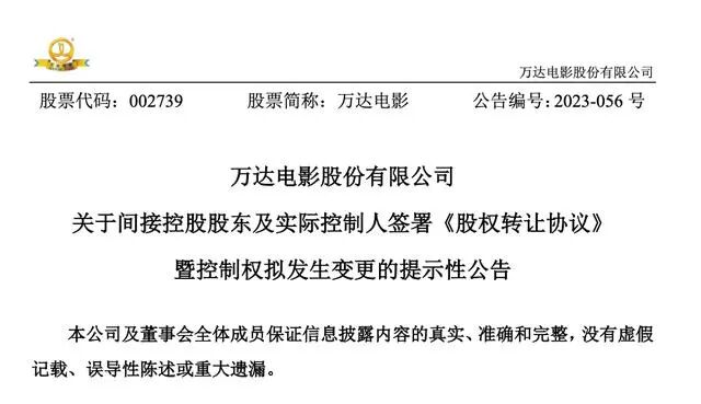 同样是今年4月,万达电影发布公告,北京万达文化产业集团有限公司、王健林,分别转让所持北京万达投资有限公司20%股权和1.2%股权,并且已办理完成工商变更登记手续。