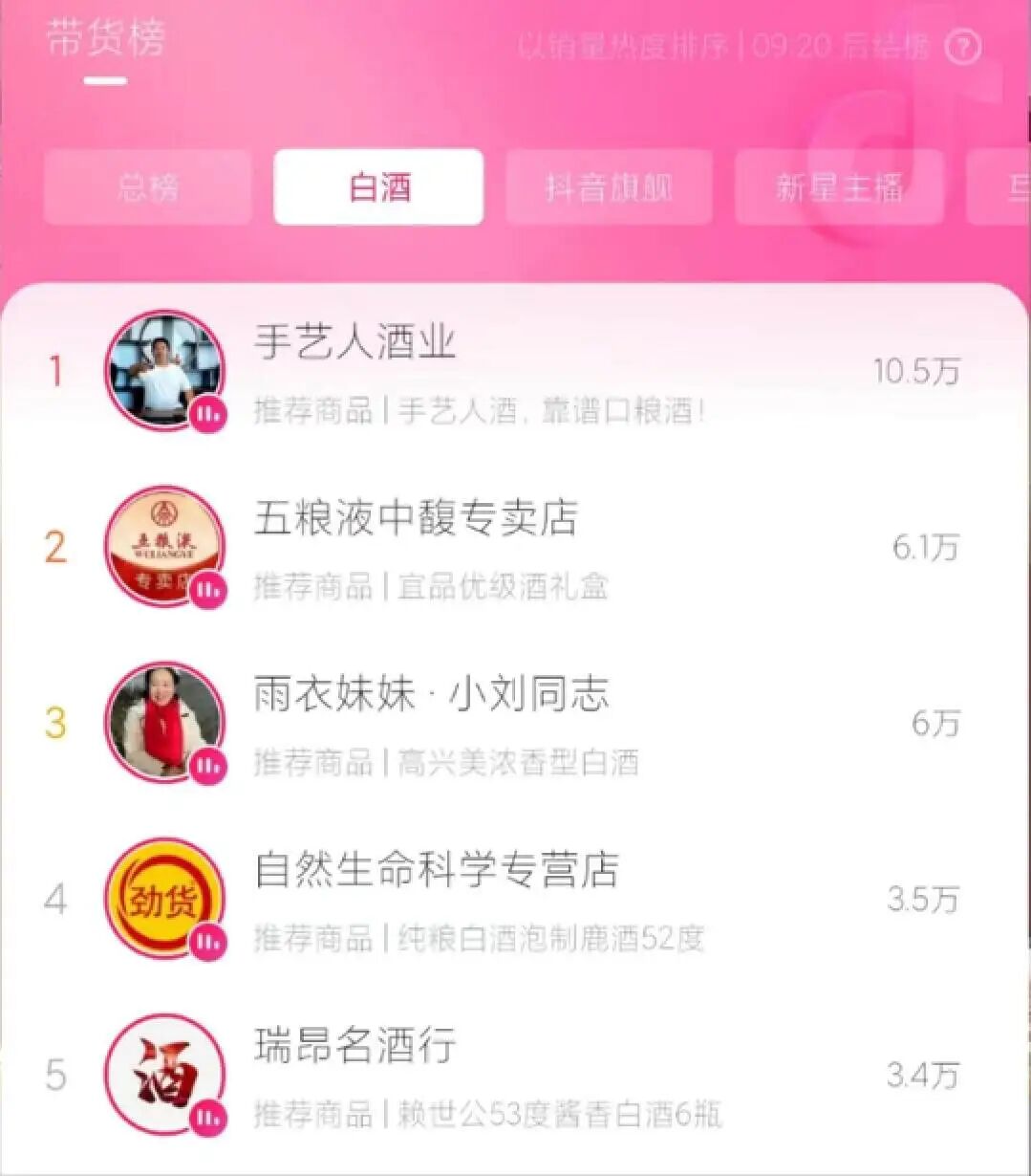 显而易见,抖音等短视频平台的出现,改变了传统白酒的销售链路,更多中小品牌也能通过直播+电商,实现“逆袭”。