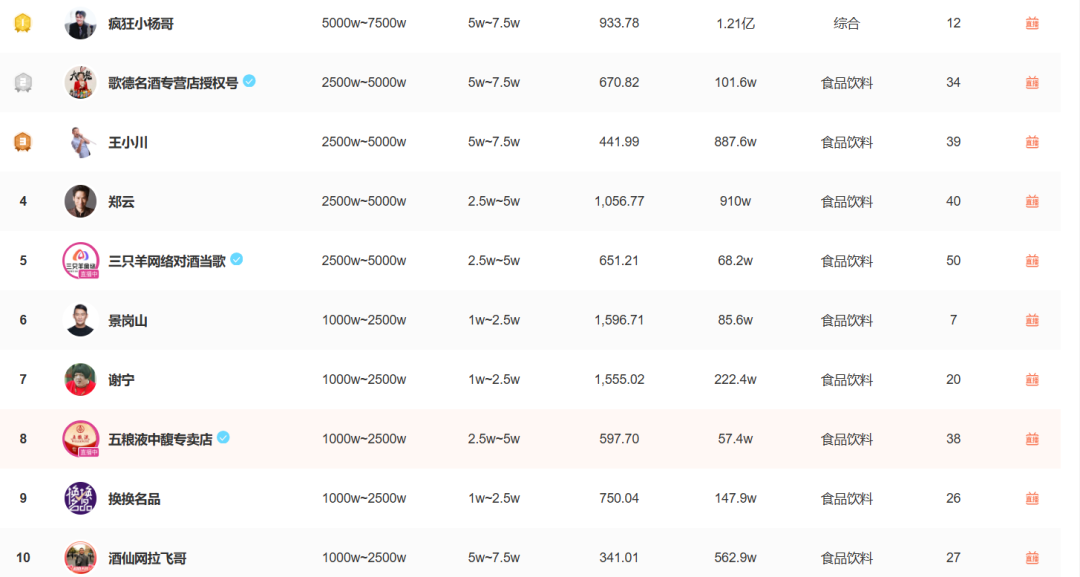 蝉妈妈数据则显示,抖音直播电商白酒类目被男主播“霸占”。5 月赛道内带货前 10 的主播除店铺账号以外,均是男主播。其中 @疯狂小杨哥 销售额排名第一,@歌德白酒专营店 第二,品酒师出身的垂类达人 @王小川 位列第三。