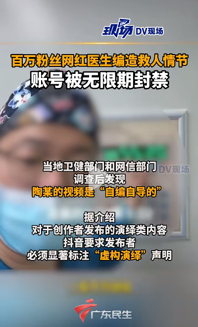 随后,抖音平台请求当地的卫健部门和网部门调查,经过调查,陶某称该视频是“自己在家自编自导的”。