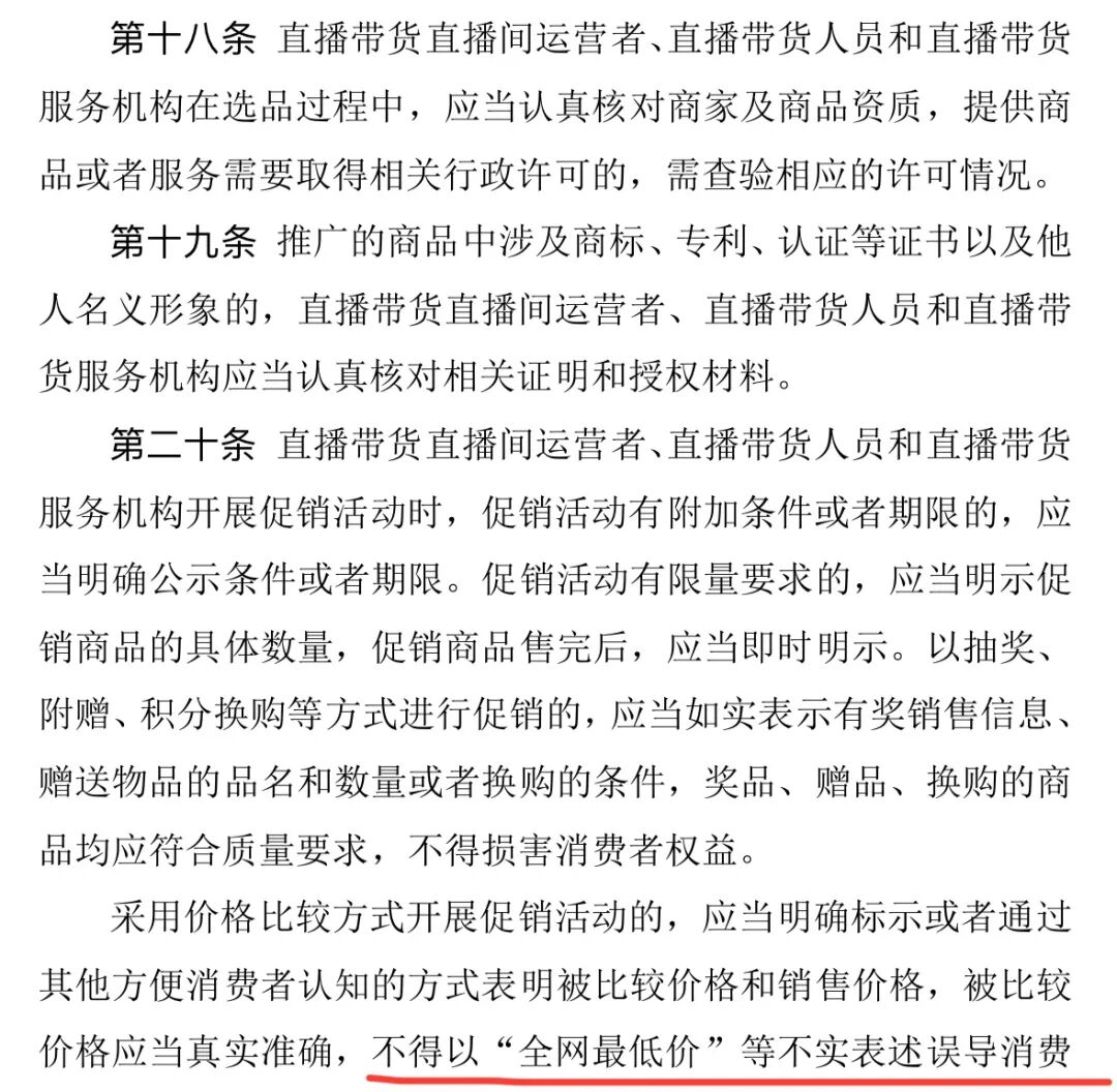 目前,已经有相关行业行规出来了,专门整治这种以“全网最低价”等不实表述误导消费者下单的行业乱象。